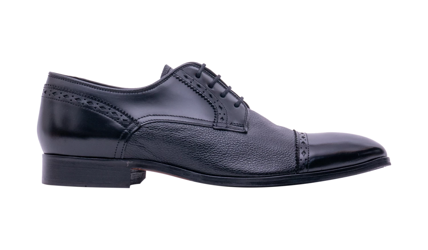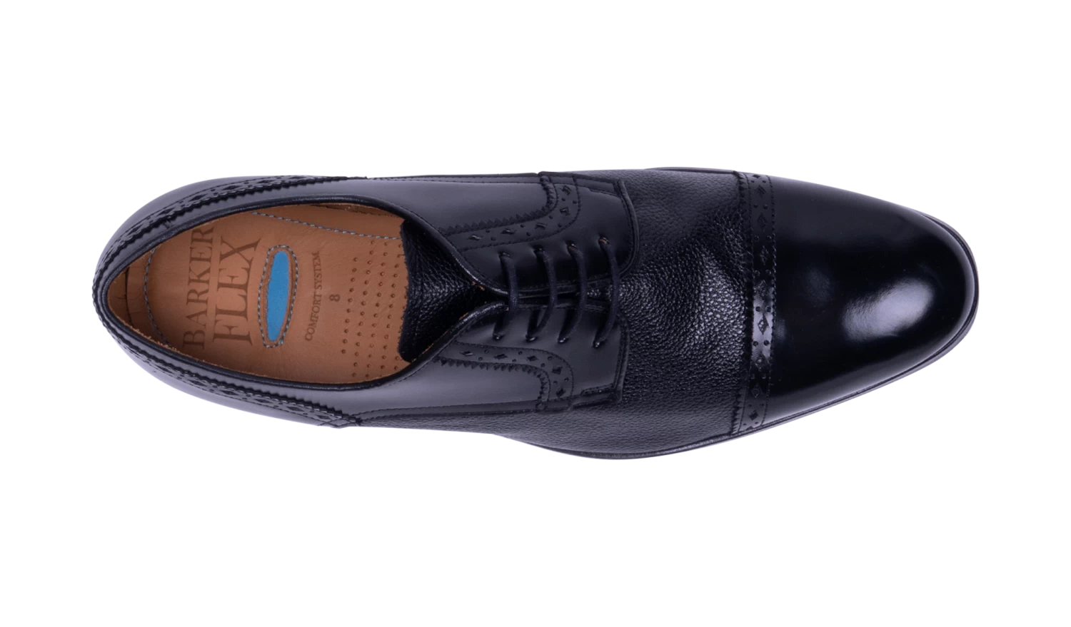 The Ashbourne Derby is the epitome of classic dress shoes, crafted to perfection with a touch of contemporary flair. Designed in England and handcrafted in our partner factory in Portugal, this stylish derby is the perfect choice for any formal occasion. The diamond punch detail adds a subtle yet elegant touch to the high shine leather, while the grain leather adds a rich and textured finish. The Blake stitched leather sole with rubber forepart ensures maximum durability and traction, while the full leather lining ensures breathability and comfort. The Ashbourne Derby also features a comfort leather insole with Sorbothane padding, providing shock absorption and reducing foot fatigue, so you can wear them all day with ease. Elevate your style and complete your formal look with the timeless elegance of the Ashbourne Derby.