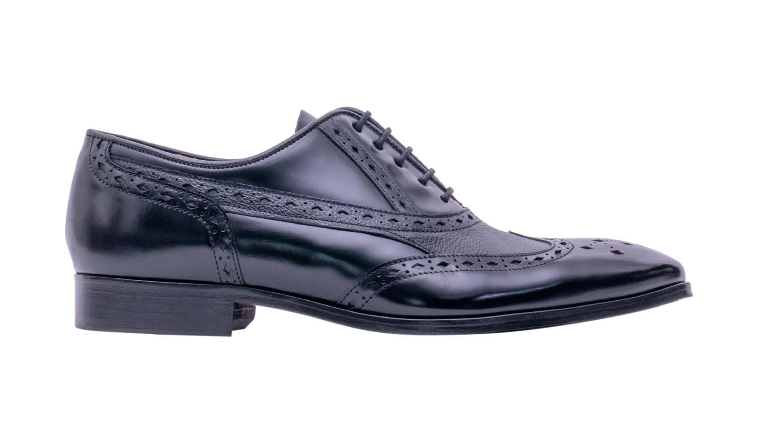 Introducing the Bampton Oxford Brogue, a true embodiment of classic elegance and sophistication. Designed in England and made in our partner factory in Portugal, this dress oxford brogue is perfect for any formal occasion. The diamond punch detailing adds a touch of decorative elegance, while the combination of high shine and grain leather creates a striking contrast, ensuring that this shoe will make a statement wherever it is worn.