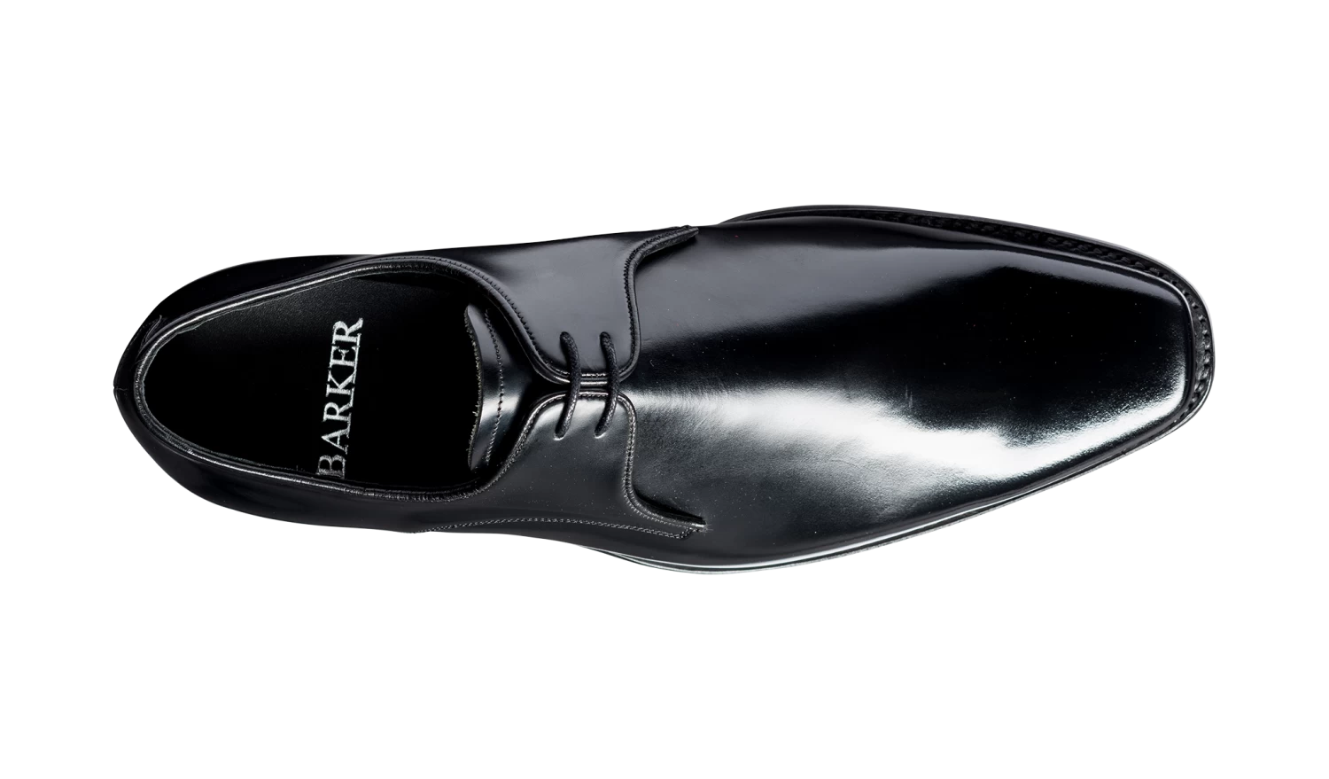 Hi-shine finish on this square toe leather Derby Shoe from Barker. The blue toe, laces and trim give these a stand-out glow.
