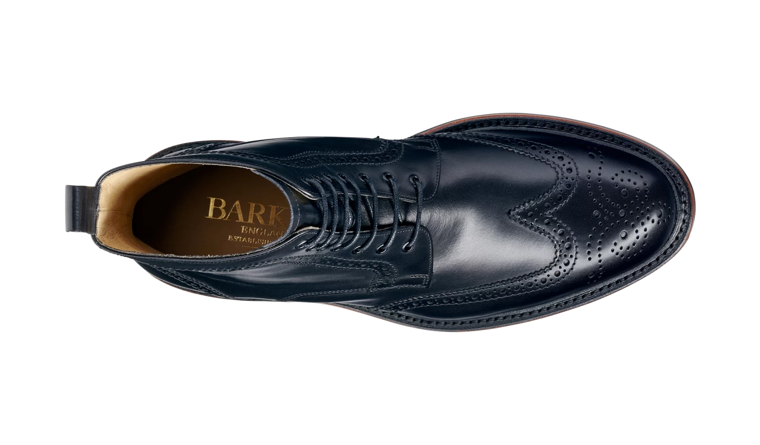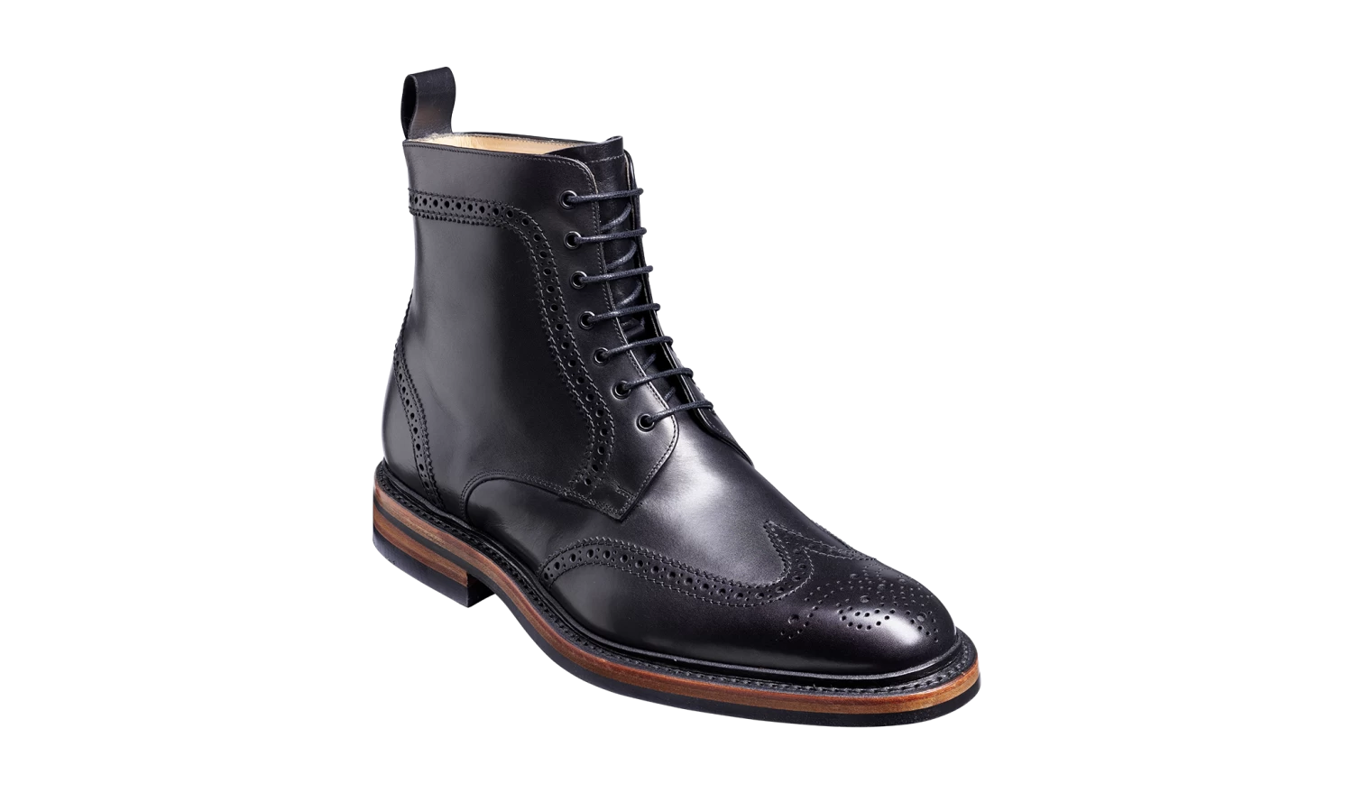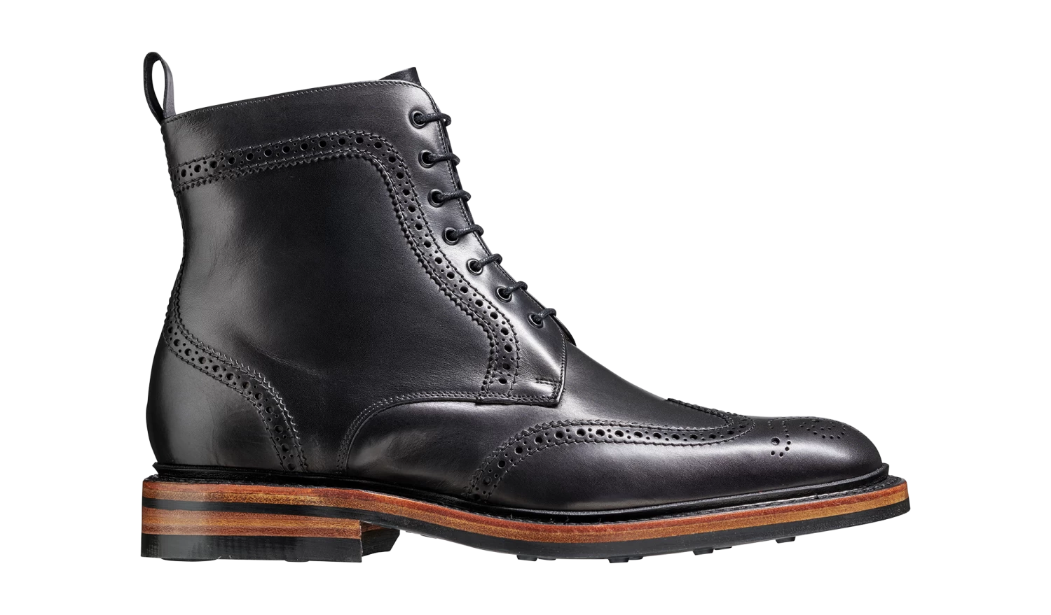 Calder is a rugged wing-cap boot available in four grain leather colour options with a Dainite rubber sole – this Black calf colourway is new for AW19. Perfect for country pursuits or an alternative aesthetic for smarter attire.