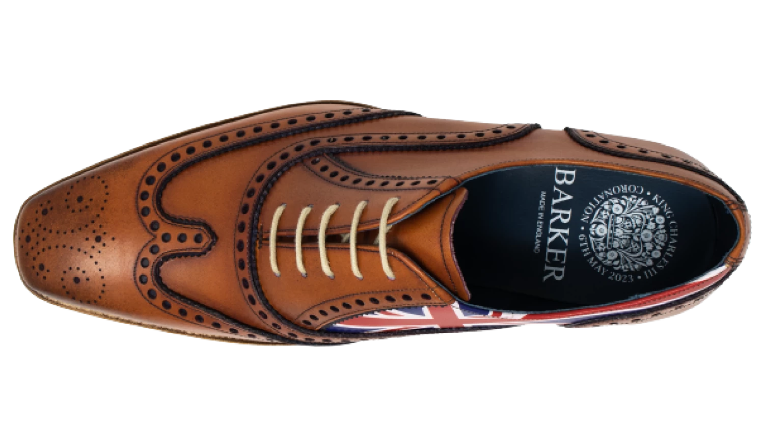 Introducing our Limited Edition Spencer Oxford Brogue, part of our exclusive Coronation Collection. Crafted with utmost care and precision, this shoe is a true masterpiece that captures the essence of British history and culture. The inside quarter of the shoe features a stunning Union Jack design, while the sole proudly boasts the iconic flag as well as the coronation emblem. The red, white and blue stripes on the heel add a touch of elegance and sophistication to the overall design.
