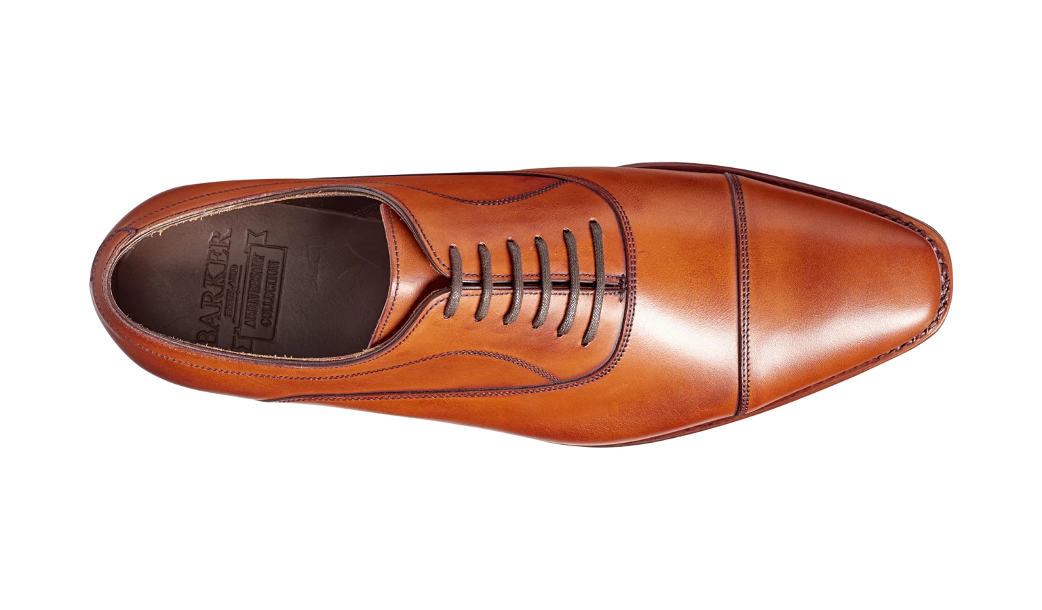 Smart and sophisticated, the Barker Elgar plain toe cap Oxford shoes are ideal for dressing up your workwear wardrobe.