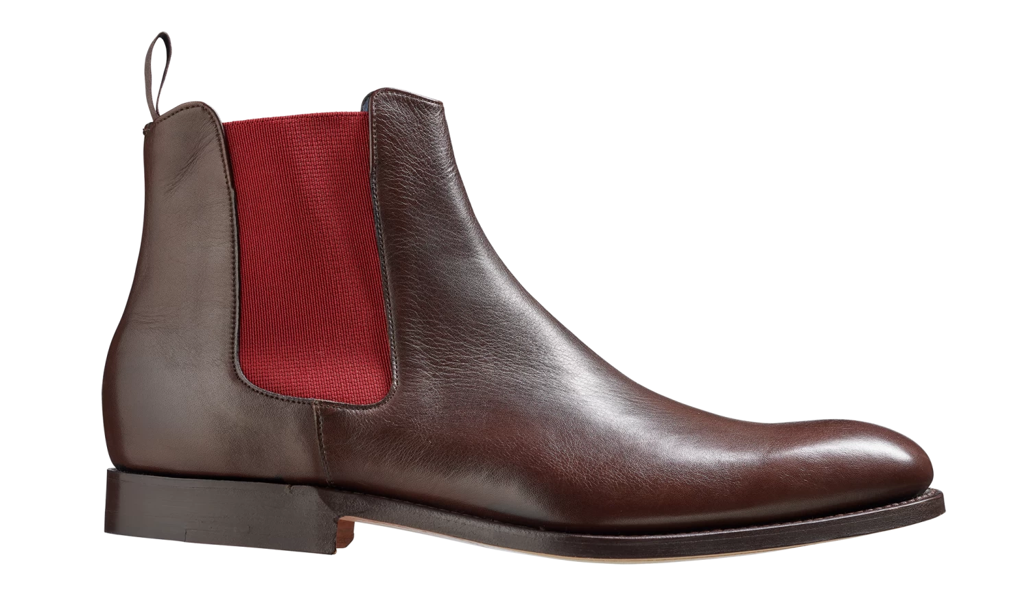 Hopper is a traditional Chelsea boot made on the 446 made from premium calf leather with contrast elastic gussets. The Dark Walnut / Burgundy Elastic is a new colourway for Autumn / Winter 2020. Also available in Cedar Calf / Blue Elastic.