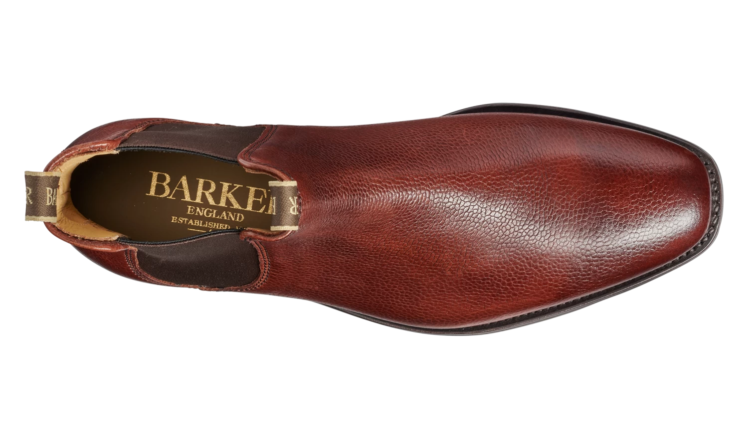 A elegant Chelsea boot, Mansfield is made on the 486 last from premium grained leather on a British Dainite rubber sole. Features include a Goodyear-welted construction, soft chisel toe and double branded tugs.