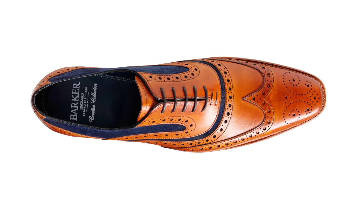 A modern take on a classic full brogue with suede or lasered paisley pattern inserts. The McClean is a firm favourite among the legions of Barker fans and for ‘Grooms to be’.