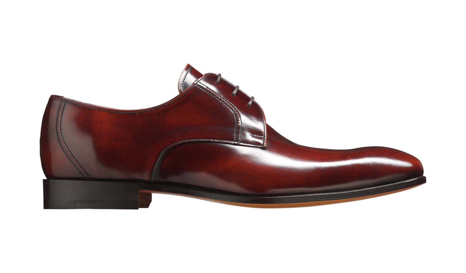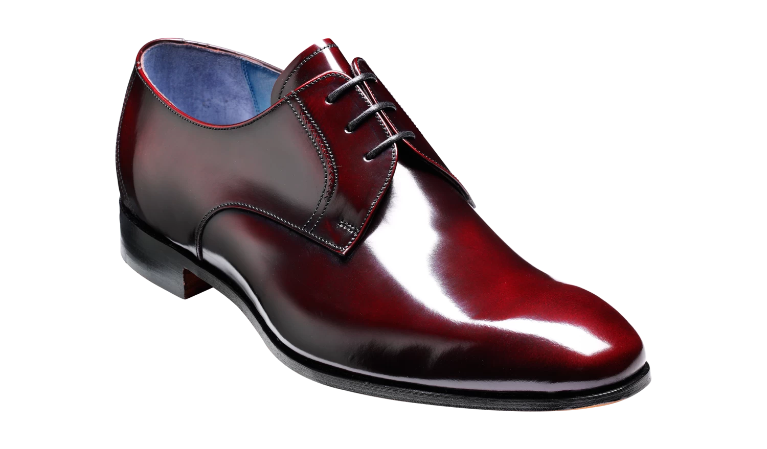 Rutherford is a classic cemented Derby available in black and burgundy hi-shine, with a lightweight 5mm cemented leather sole.