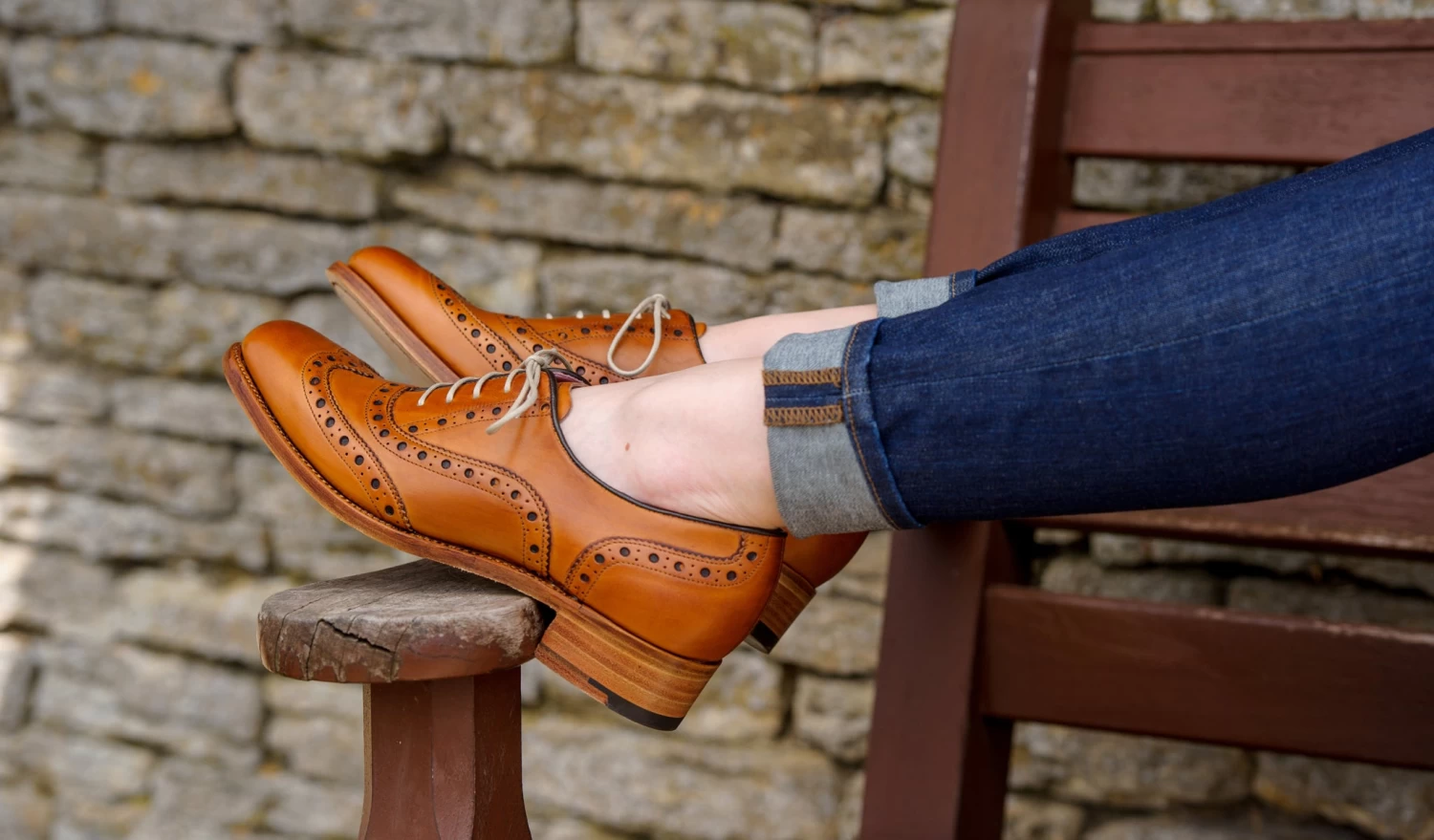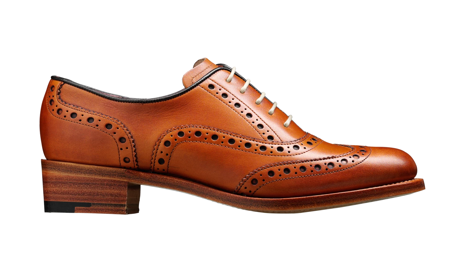 An stylish full brogue with Cuban heel and elegant wing tip and punched detail.
