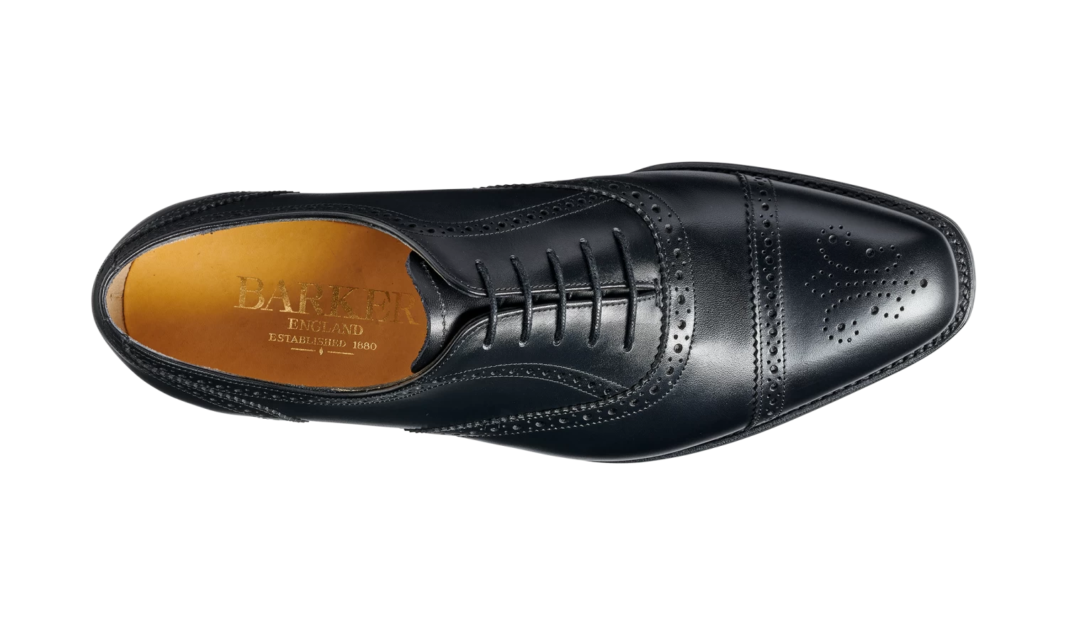 St Ives is a refined Oxford crafted with the Barker rubber sole for added durability and grip under foot. Available in Black and Dark Walnut colourways.