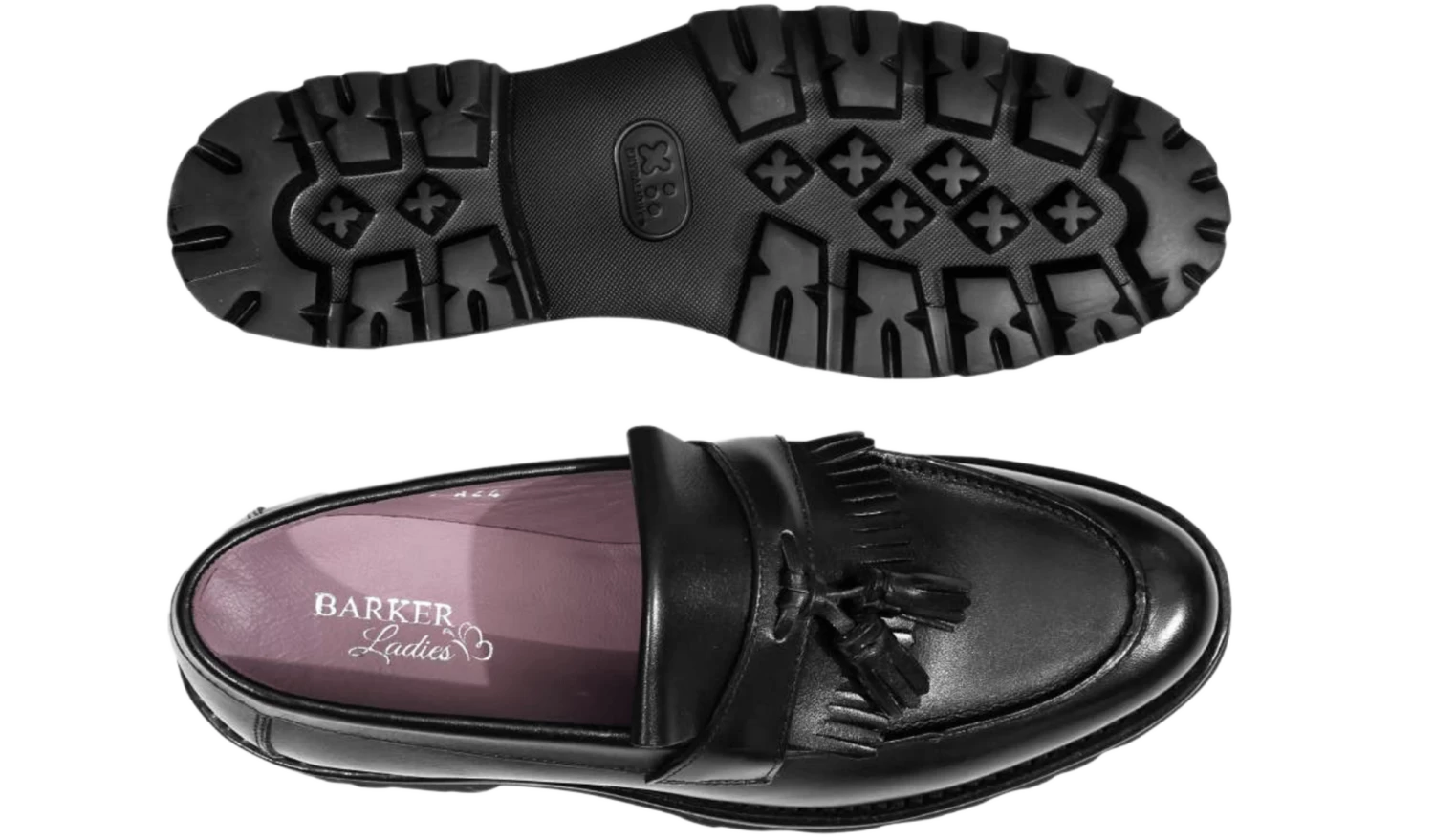 Step into timeless sophistication with Barker Tia Tassel Loafer. Crafted from premium leather and adorned with intricate stitch detailing along the apron, this silhouette exudes trendy elegance. The addition of the tassel adds a touch of charm and personality,