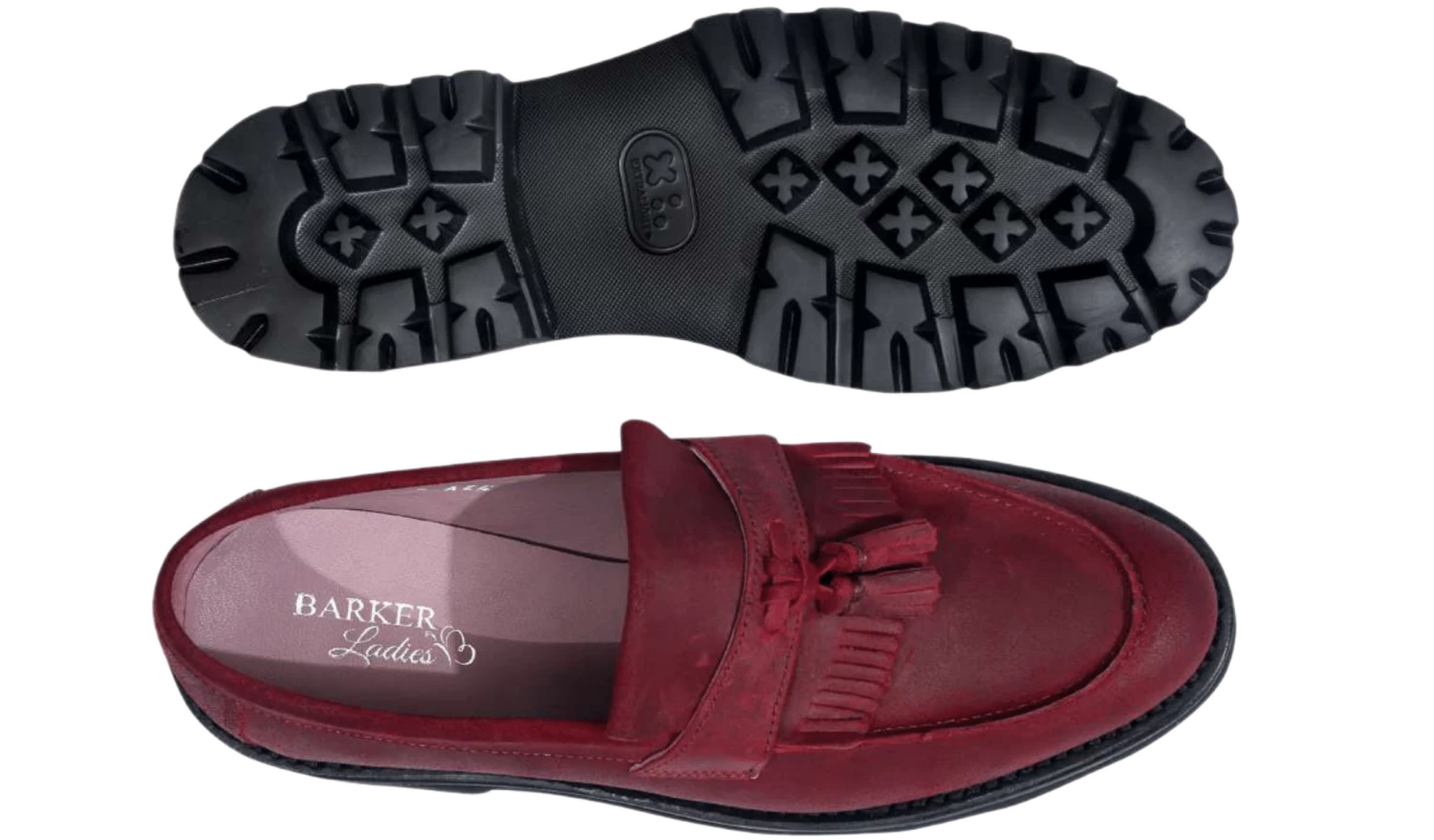 Step into timeless sophistication with Barker Tia Tassel Loafer. Crafted from premium leather and adorned with intricate stitch detailing along the apron, this silhouette exudes trendy elegance. The addition of the tassel adds a touch of charm and personality,