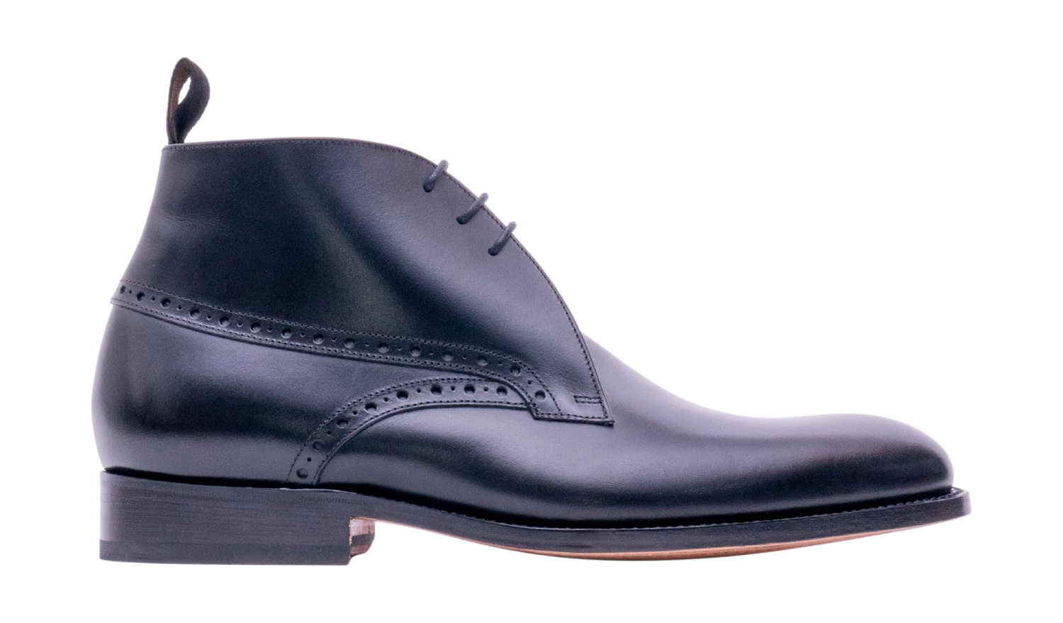 The Chukka boot is an ankle high boot traditionally featuring three pairs of eyelets, calfskin uppers and rounded toes.