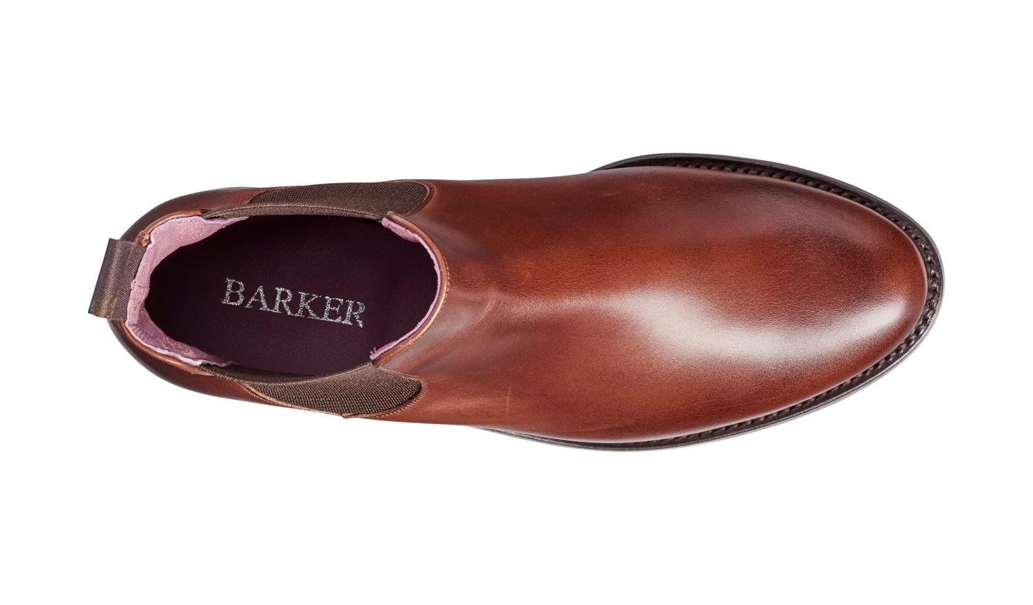 Violet is a stylish Chelsea boot with a colourful twist. Featuring blue or red elastic gussets and a Paisley patterned lining, Violet is available in various options including calf and suede leathers.